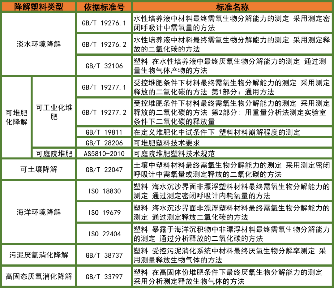 可降解塑料的可降解性能检验方法按照降解环境条件进行划分,具体如表2所示。